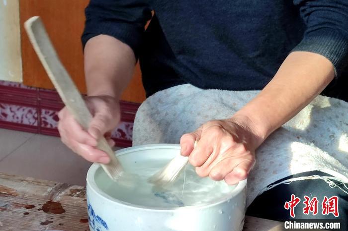 在水中反復梳洗毛筆頭是制筆的重要環(huán)節(jié)?!枪跇?攝
