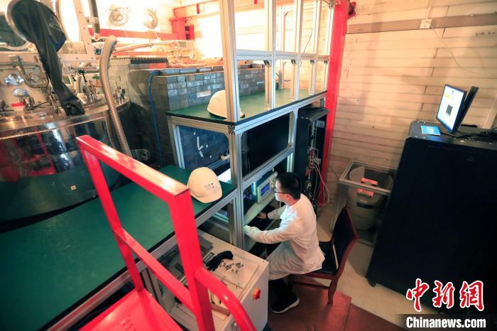中國錦屏地下實驗室內(nèi),科研助理景明坤正在對樣本進行輻射檢測。 王磊 攝