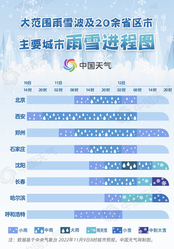 今冬北方首場(chǎng)大范圍雨雪來(lái)襲 一圖掌握重點(diǎn)城市雨雪進(jìn)程