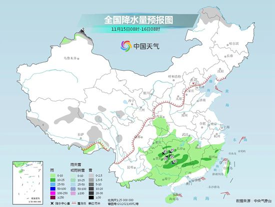 今起至周末,西南地區(qū)東部、江南大部、華南西部等地將有一次明顯降雨過(guò)程,部分地區(qū)有大雨或暴雨。其中今天,江漢東部、江南大部、西南地區(qū)東部、華南大部等地部分地區(qū)有小到中雨,其中,湖南西部、貴州東部、廣西東北部等地部分地區(qū)有大雨。內(nèi)蒙古東北部、黑龍江西北部、新疆北疆北部和北疆東部、西藏北部和東部、青海南部和西部等地部分地區(qū)有小到中雪,其中,新疆北疆北部和北疆東部等地部分地區(qū)有大雪。