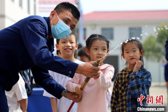 小朋友們親身體驗(yàn)滅火裝備器材?!〔淘鲂?攝