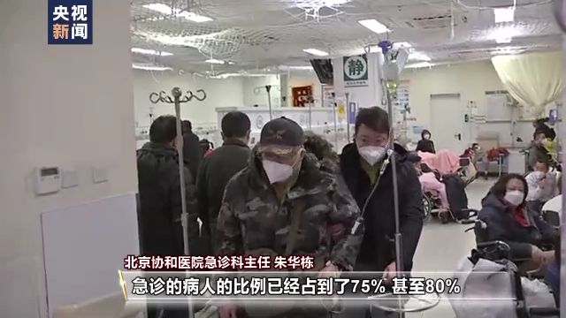 北京協(xié)和醫(yī)院急診科主任 朱華棟:我從醫(yī)大概有30來(lái)年了,可以說(shuō)是最困難的一個(gè)時(shí)候。病人量多,還有危重程度也超過(guò)平時(shí)。像在以往的話,一、二、三級(jí)占的比例平均平時(shí)的話也就是在50%左右。最近這幾天我們監(jiān)測(cè)到一、二、三級(jí)這些急診的病人比例已經(jīng)占到了75%,甚至80%,危重病人的比重高,可以說(shuō)這是一個(gè)前所未有的挑戰(zhàn)。