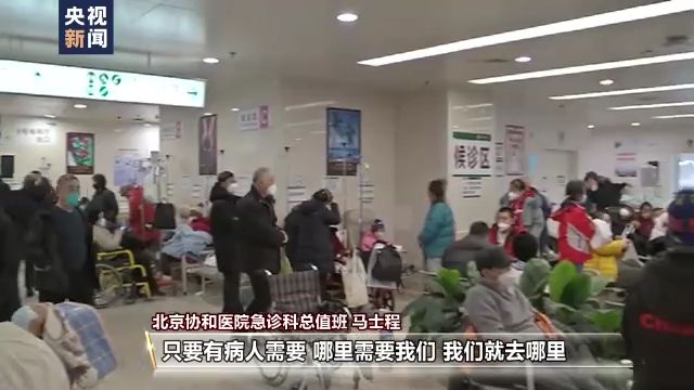 北京協(xié)和醫(yī)院急診科總值班 馬士程:我們的教授主任們都跑到一線來(lái)跟我們一起來(lái)并肩作戰(zhàn),這對(duì)我們來(lái)說(shuō)也是一個(gè)很好的鼓舞,也告訴我們身為大夫不管你是什么樣的職稱和職位,只要有病人需要,哪里需要,我們就去哪里。