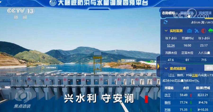 大藤峽工程樞紐管理中心副主任趙光輝:“我們對(duì)西江4次編號(hào)洪水做了5次預(yù)演,根據(jù)未來7天的降雨量預(yù)測(cè),統(tǒng)籌分析下游會(huì)淹沒桂平、藤縣、梧州哪些區(qū)域,分析了3種不同調(diào)度方案的利弊,攔蓄洪峰量達(dá)到了7億立方米,將西江梧州站洪峰出現(xiàn)時(shí)間推遲一天,同時(shí)也避免了西江、北江的洪峰遭遇?!?/p>