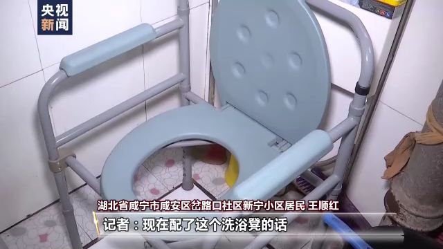湖北省咸寧市咸安區(qū)岔路口社區(qū)新寧小區(qū)居民 王順紅:原來就用盆,給他擦洗?,F(xiàn)在方便多了,洗浴凳又穩(wěn),不怕摔跤,帶來很大的方便。