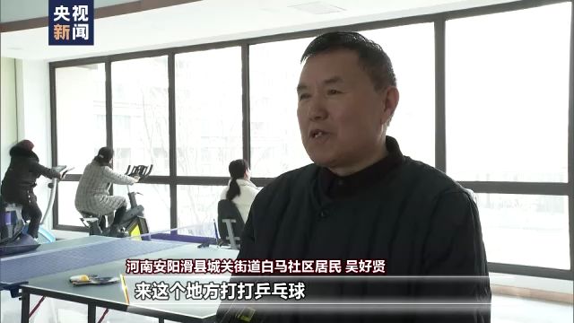 河南安陽滑縣城關(guān)街道白馬社區(qū)居民 吳好賢:經(jīng)常到這個地方來,來打打乒乓球,鍛煉鍛煉身體,下下象棋,身心挺好。