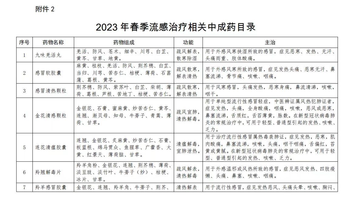 北京發(fā)布2023年春季流感治療相關(guān)中成藥目錄