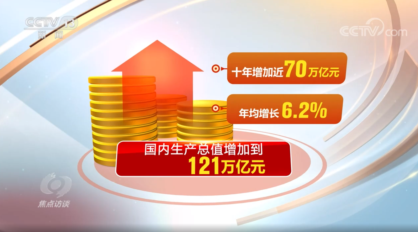 這五年,我國經(jīng)濟發(fā)展再上新臺階。國內(nèi)生產(chǎn)總值增加到121萬億元,五年年均增長5.2%,十年增加近70萬億元、年均增長6.2%,在高基數(shù)基礎(chǔ)上實現(xiàn)了中高速增長、邁向高質(zhì)量發(fā)展。