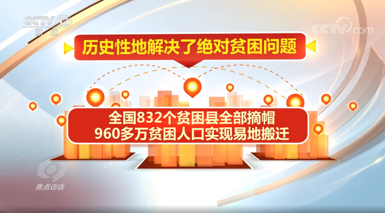 這五年,我國脫貧攻堅任務(wù)勝利完成。經(jīng)過八年持續(xù)努力,近1億農(nóng)村貧困人口實現(xiàn)脫貧,全國832個貧困縣全部摘帽,960多萬貧困人口實現(xiàn)易地搬遷,歷史性地解決了絕對貧困問題。