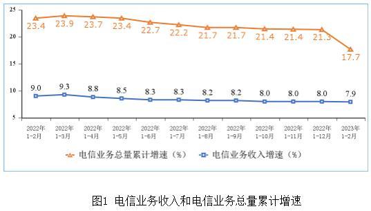 中新網(wǎng)3月23日電 工信部23日發(fā)布2023年1-2月份通信業(yè)經(jīng)濟(jì)運(yùn)行情況。1-2月份,信息通信行業(yè)整體運(yùn)行平穩(wěn)。電信業(yè)務(wù)收入和業(yè)務(wù)總量穩(wěn)步增長,云計(jì)算等新興業(yè)務(wù)拉動(dòng)作用持續(xù)增強(qiáng);5G、千兆光網(wǎng)、物聯(lián)網(wǎng)等新型基礎(chǔ)設(shè)施建設(shè)穩(wěn)步推進(jìn),網(wǎng)絡(luò)連接終端用戶規(guī)模不斷擴(kuò)大。