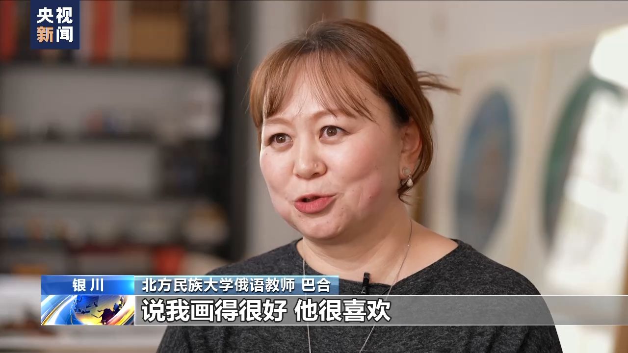 北方民族大學(xué)俄語(yǔ)教師 巴合:我丈夫看了我的畫,說我畫得很好,他很喜歡。從那以后,我就開始了我的藝術(shù)之旅。
