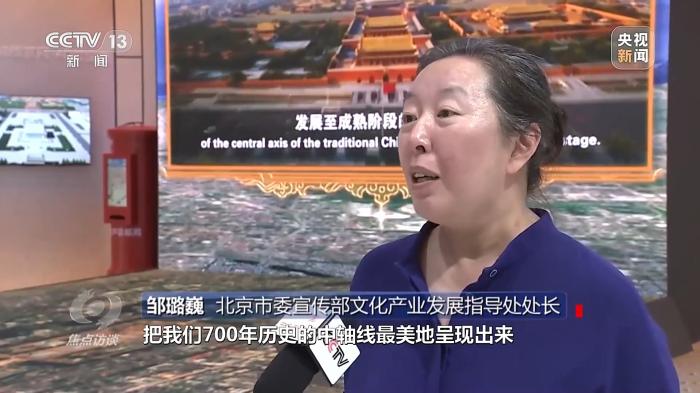 北京市委宣傳部文化產(chǎn)業(yè)發(fā)展指導處處長鄒璐巍:運用了衛(wèi)星遙感、裸眼3D相關技術,把我們700年歷史的中軸線最美地呈現(xiàn)出來。