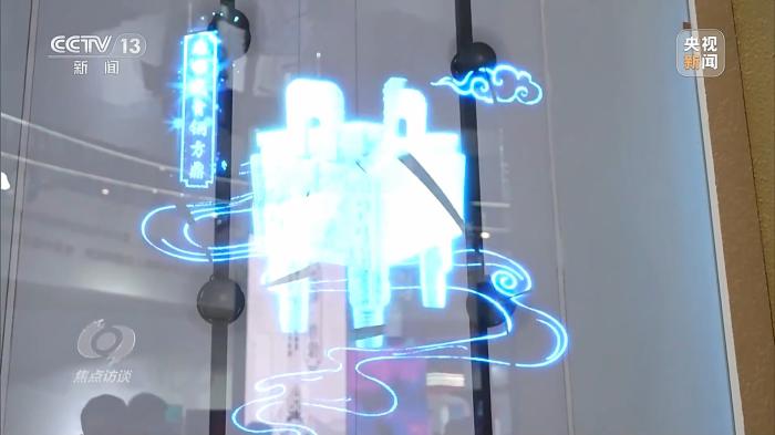 在AI繪畫一旁,國家級保護文物司母戊大方鼎、青銅縱目面具、四羊方尊、越王勾踐劍、曾侯乙編鐘等正以數(shù)字化形式呈現(xiàn)在觀眾面前。參展商通過數(shù)字孿生技術復現(xiàn)或重構文物和文化遺產(chǎn)的數(shù)字鏡像,從而實現(xiàn)文物和文化遺產(chǎn)的保護、修復直至永久性保存和活態(tài)化傳承。觀眾既可以看到部分真實的復制文物和文化遺產(chǎn),又可以體驗虛擬的數(shù)字文物和文化遺產(chǎn),虛實之間,體會數(shù)字化給傳統(tǒng)文物和文化遺產(chǎn)帶來的生命力。