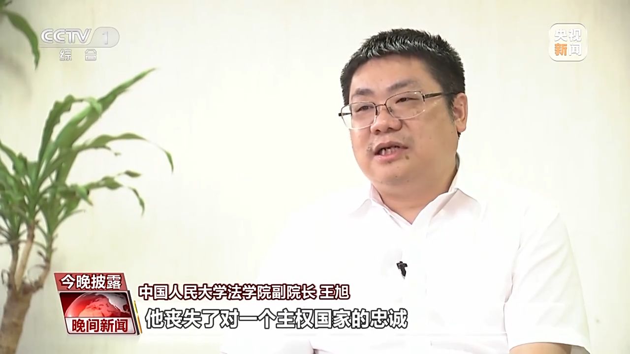 中國人民大學法學院副院長 王旭:投靠的社會危害性、主觀惡性,應該是更強烈的。投靠實際上就是說,他喪失了對一個主權(quán)國家的忠誠。