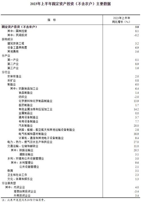 國家統(tǒng)計局:上半年全國固定資產(chǎn)投資增長3.8%