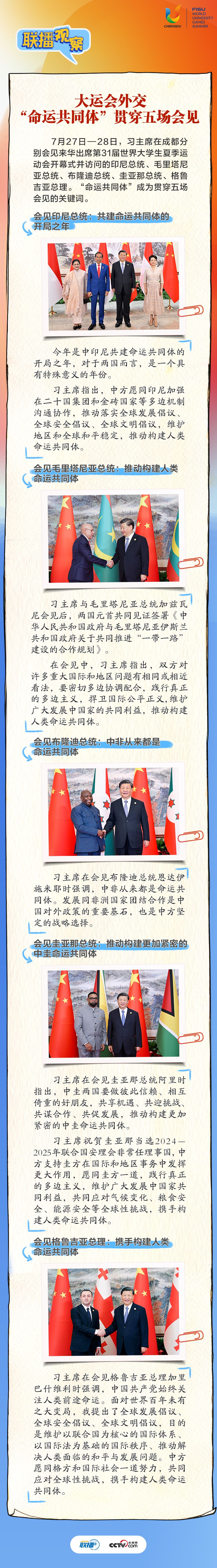 大運會時間,我國重要的主場外交也同步拉開帷幕,習近平主席的日程格外繁忙。央視網《聯(lián)播+》帶您沉浸式感受這場青春盛會為世界送出的別具匠心的“四川禮物”。