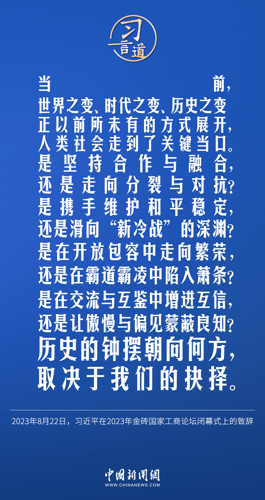 當?shù)貢r間8月22日下午,中國國家主席習近平向約翰內(nèi)斯堡金磚國家工商論壇閉幕式發(fā)表題為《深化團結合作 應對風險挑戰(zhàn) 共建更加美好的世界》的致辭。習近平指出——