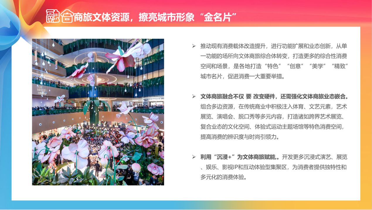 《報告》認為,推動現(xiàn)有消費載體改造提升,進行功能擴展和業(yè)態(tài)創(chuàng)新,從單一功能的場所向文體商旅綜合體轉變,打造更多的綜合性消費空間和場景,是各地打造“特色”“創(chuàng)意”“美學”“精致”城市名片,促進消費一大重要舉措。