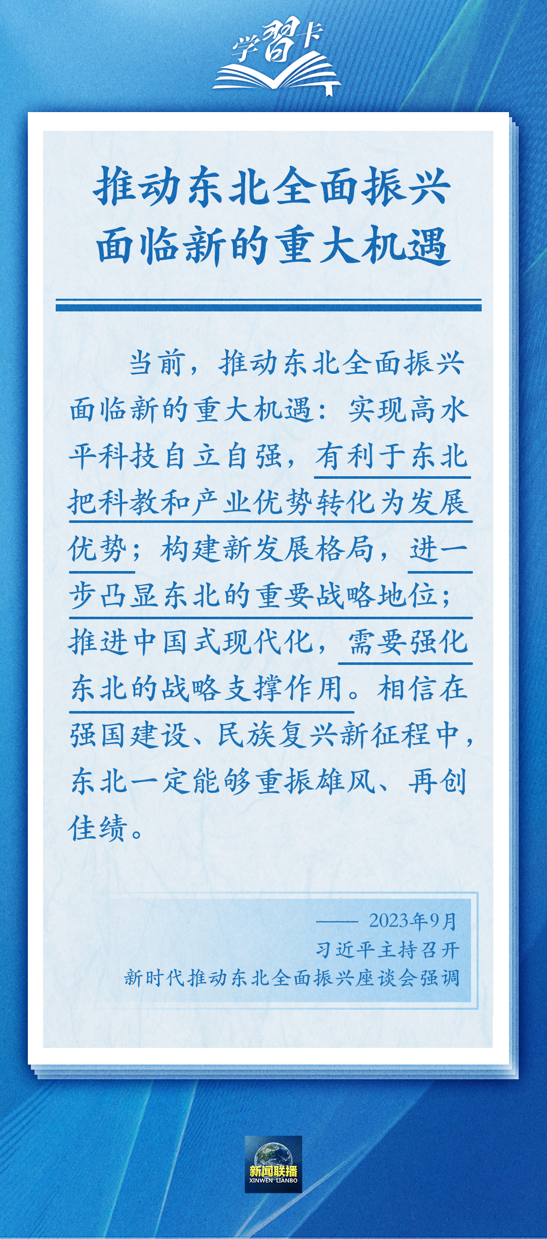 學(xué)習(xí)卡丨牢牢把握東北的重要使命,推動?xùn)|北全面振興發(fā)展