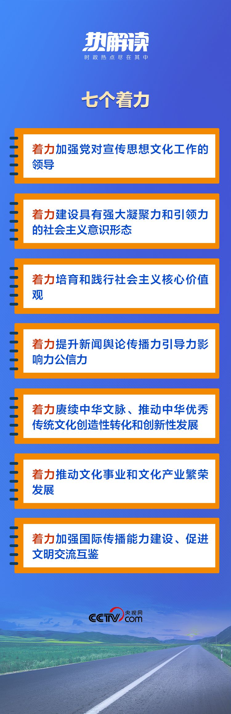 在這次對宣傳思想文化工作的重要指示中,總書記提出了“七個著力”的重要要求,為新時代文化建設(shè)明確了路線圖和任務書。