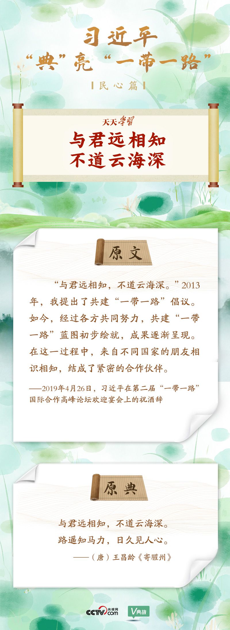 在國內(nèi)國際多個重要場合,習(xí)近平主席頻頻引經(jīng)據(jù)典,介紹“一帶一路”承載的厚重歷史,闡述“一帶一路”建設(shè)的理念和重大意義,描繪“一帶一路”美好的發(fā)展愿景。央視網(wǎng)《天天學(xué)習(xí)》欄目特選取習(xí)近平主席的部分用典,與您一起學(xué)習(xí)領(lǐng)會。