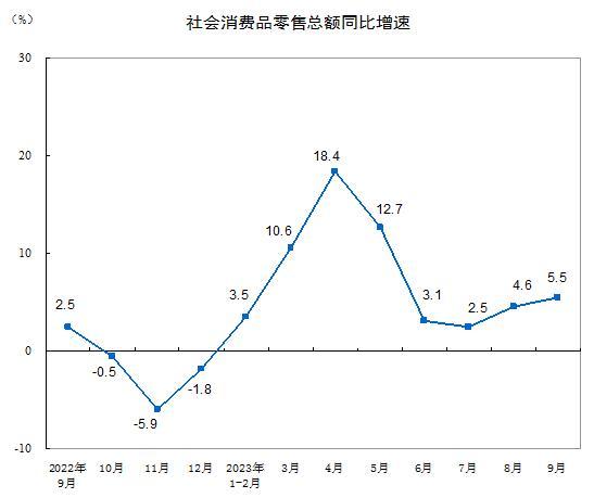 國(guó)家統(tǒng)計(jì)局:9月份社會(huì)消費(fèi)品零售總額增長(zhǎng)5.5%