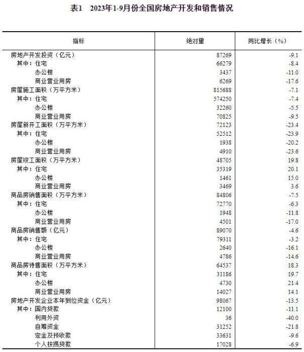 國家統(tǒng)計局:1-9月份商品房銷售面積同比下降7.5%