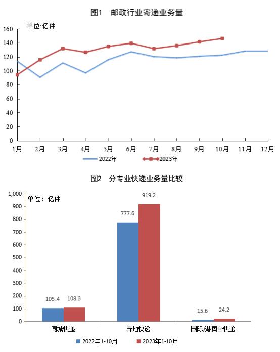 10月份,郵政行業(yè)寄遞業(yè)務(wù)量完成146.2億件,同比增長(zhǎng)19.7%。其中,快遞業(yè)務(wù)量完成120.6億件,同比增長(zhǎng)22.2%。