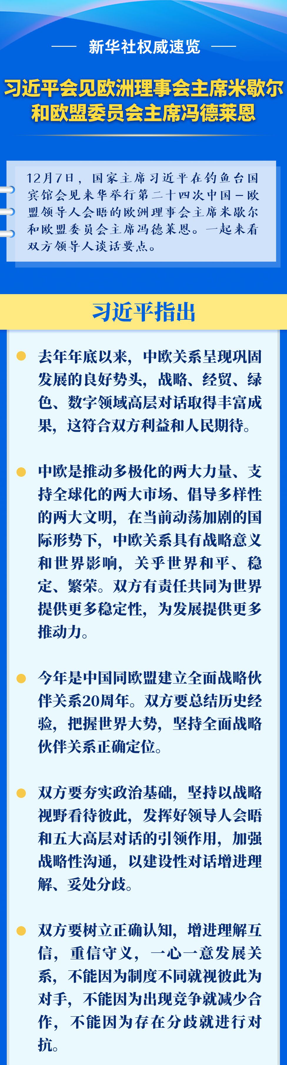 新華社權(quán)威速覽|習(xí)近平會(huì)見歐洲理事會(huì)主席米歇爾和歐盟委員會(huì)主席馮德萊恩