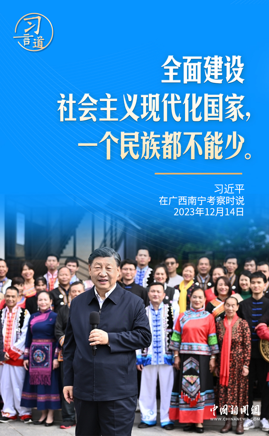 12月14日,在廣西南寧名為蟠龍社區(qū)的多民族聚居社區(qū)里,習(xí)近平再次強(qiáng)調(diào)了“一個(gè)民族都不能少”。