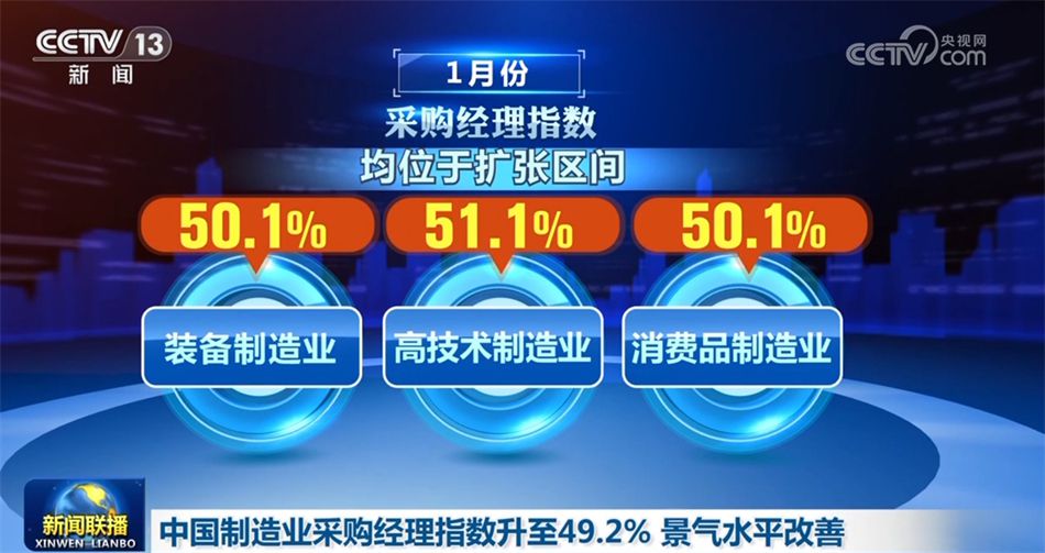 中國(guó)物流與采購(gòu)聯(lián)合會(huì)、國(guó)家統(tǒng)計(jì)局服務(wù)業(yè)調(diào)查中心1月31日公布,1月份中國(guó)制造業(yè)采購(gòu)經(jīng)理指數(shù)為49.2%,較上月回升0.2個(gè)百分點(diǎn),結(jié)束了連續(xù)3個(gè)月下降勢(shì)頭,景氣水平有所改善。
