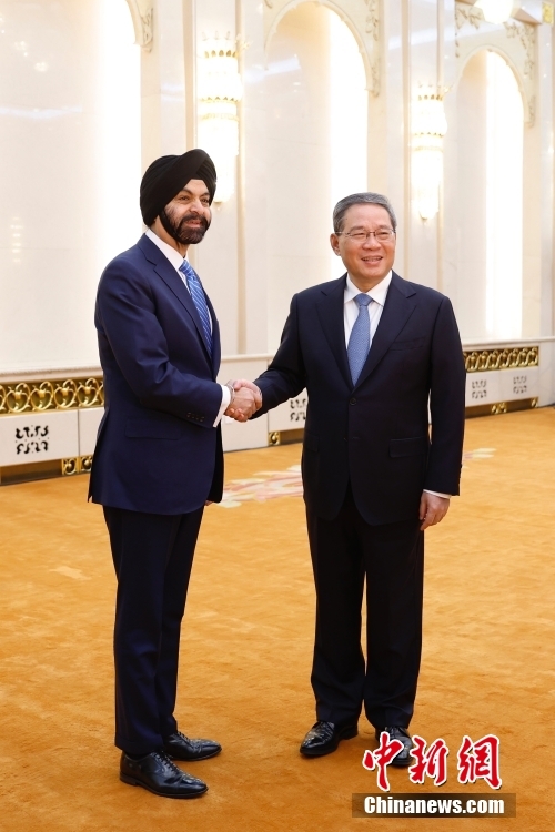 3月25日上午,中國國務院總理李強在北京人民大會堂會見世界銀行行長彭安杰。