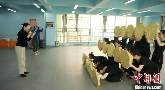 沒(méi)有音樂(lè),只有“啪啪”的拍子聲和身體接觸地板的摩擦聲。排練的時(shí)候,孩子們的眼睛從不離開(kāi)老師,伴隨著老師手勢(shì)的起落,做著每一個(gè)動(dòng)作。