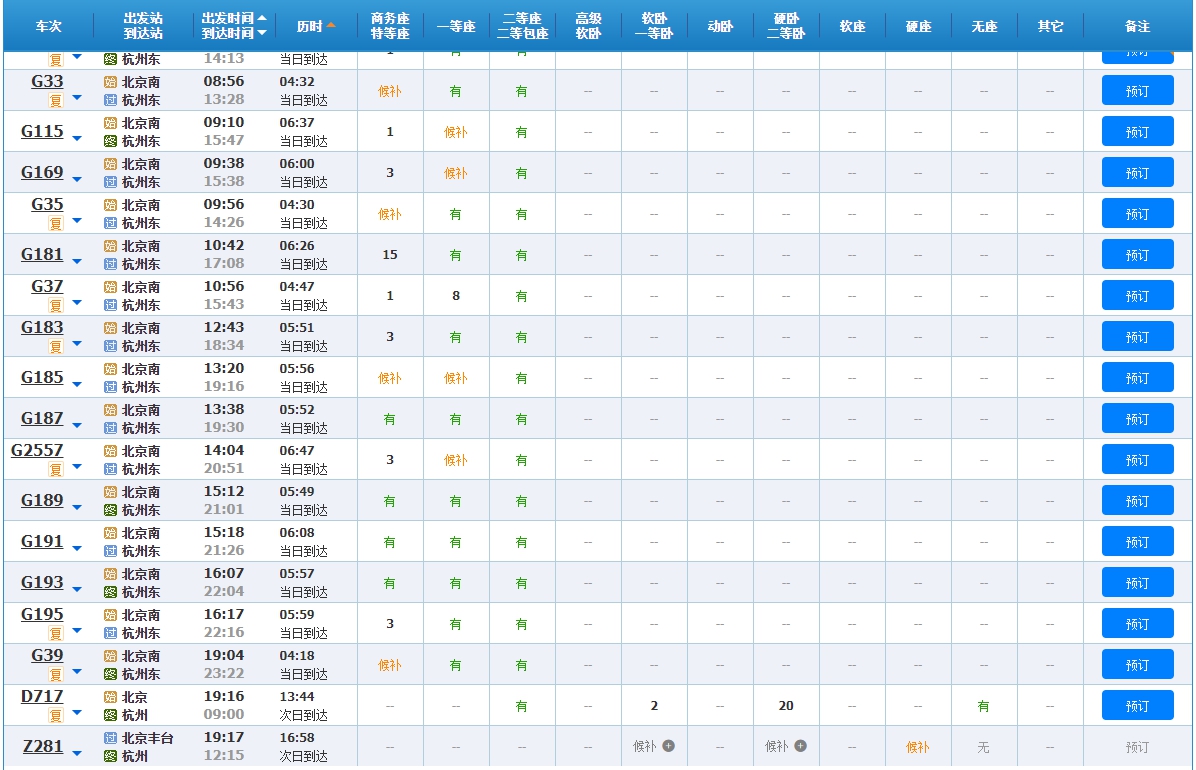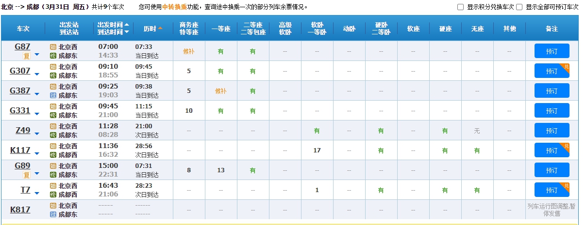 以北京開往上海、杭州、成都等方向的列車為例,3月31日、4月1日車次多數余票充足,僅個別車次需要候補購票。