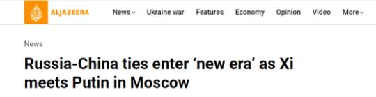 卡塔爾半島電視臺網(wǎng)站21日報道稱,中俄元首簽署聯(lián)合聲明,將深化新時代中俄關(guān)系,俄中合作具有無限可能和廣闊前景。