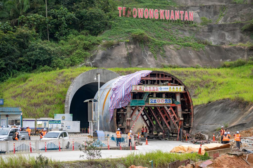 這是3月6日在馬來(lái)西亞彭亨州拍攝的馬來(lái)西亞東海岸鐵路(馬東鐵)關(guān)丹隧道施工現(xiàn)場(chǎng)。