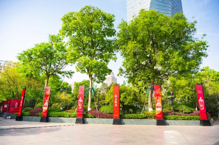 顏色鮮明的品牌logo、隨風(fēng)招展的品牌道旗、重點產(chǎn)品大幅海報……在酒店內(nèi)外,五糧液元素隨處可見,成為一道靚麗的風(fēng)景。作為濃香型白酒典范和中國白酒領(lǐng)軍品牌,五糧液攜多款核心產(chǎn)品盛裝亮相,以豐富多樣的氛圍裝置向四海賓朋傳遞企業(yè)風(fēng)采、品牌風(fēng)貌,精彩演繹中國名酒璀璨歷史和濃香風(fēng)范,讓“大國濃香、和美五糧、中國酒王”的風(fēng)姿在全國糖酒會舞臺盡情閃耀。