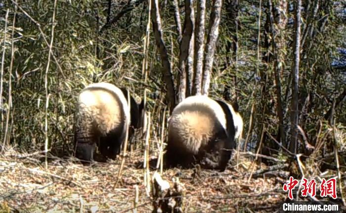 中新網(wǎng)雅安4月12日電 (劉剛 李夢琴 萬喬石)4月12日,大熊貓國家公園四川雅安石棉片區(qū)通報稱,近日,工作人員在對野外安裝回收的紅外線相機影像資料進行整理時,發(fā)現(xiàn)了一段兩只野生大熊貓“結(jié)伴”出鏡的畫面。