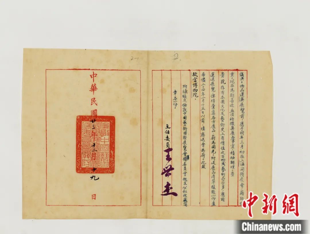 倫敦中國藝術國際展覽會籌備委員會公函(1) 故宮博物院 供圖