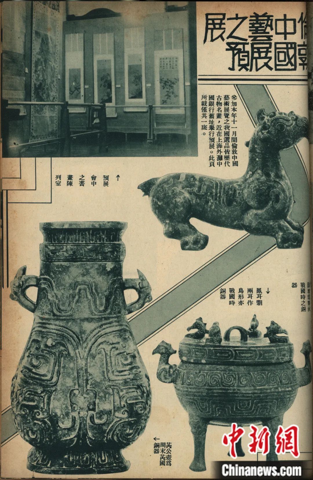 被視為“國之重器”的青銅器,幾乎匯集了當時中國主要文化機構最重要的藏品(包括傳世品和出土品),共計108件。其中,清宮舊藏傳世青銅器計96件,由故宮博物院和古物陳列所選送;最新考古發(fā)掘出土青銅器計12件,由河南博物院選送的8件為1923年發(fā)掘出土的“新鄭彝器”,由安徽省立圖書館選送的4件為1933年壽縣出土的“楚器”。瓷器出品則以明清官窯瓷器為大宗,且僅限故宮博物院出品,總計352件。書畫出品僅限故宮博物院和古物陳列所,盡量選出各派重要作家的作品,總計175件。