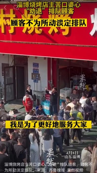 從當?shù)厝俗园l(fā)形成“把周末燒烤讓給外地游客”的默契,到淄博交警燒烤攤暖心號召當?shù)厝恕耙獰崆楹每?,把淄博這張名片打出去”;從燒烤店主苦口婆心“勸退”排隊顧客,到燒烤店老板娘發(fā)出“不為賺錢,而是為家鄉(xiāng)榮譽而戰(zhàn)”的質樸話語……