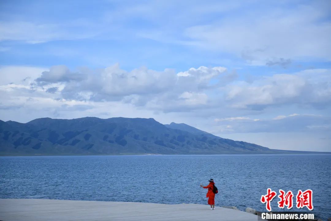 位于天山山脈的新疆賽里木湖景區(qū)內,湛藍的湖水與天一色,同遠處山峰相映成畫。張興龍 攝