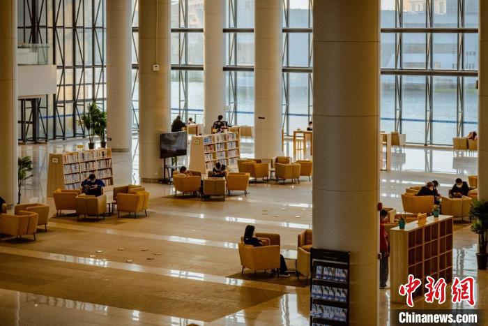 資料圖:學(xué)生們?cè)趫D書館。上海海事大學(xué)供圖