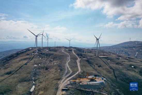 這張未標(biāo)注時間的照片拍攝的是波黑伊沃維克風(fēng)電場施工現(xiàn)場(無人機照片)。新華社發(fā)(中國電力建設(shè)集團提供)