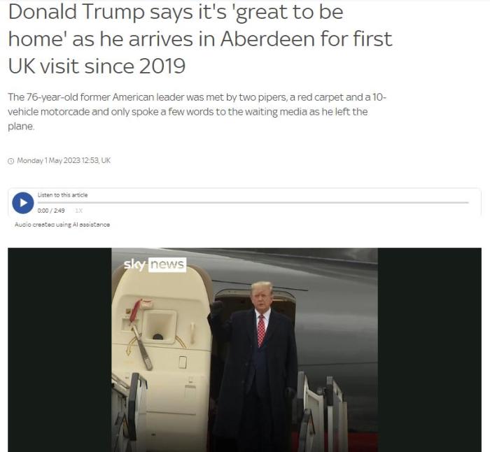 英國天空新聞網稱,這是特朗普自2019年以來首次訪問英國。他被曝以個人身份到訪。特朗普方面沒有透露他將在這里停留多久。