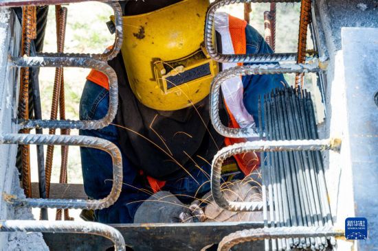 4月26日,工人在馬來西亞吉蘭丹州的馬東鐵項目一分部5號橋建設(shè)現(xiàn)場工作。新華社記者 朱煒 攝