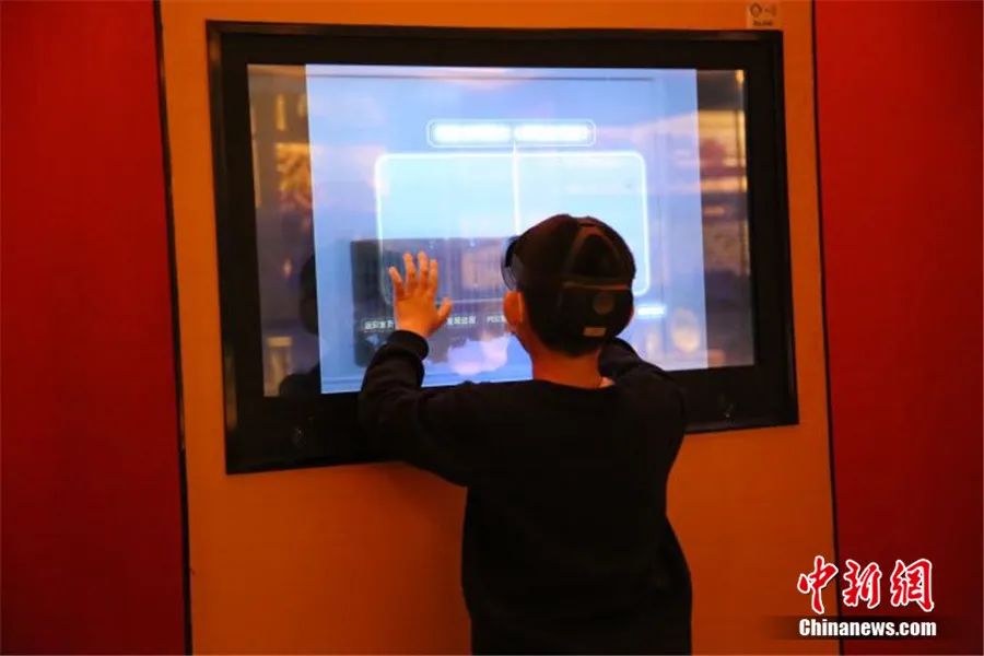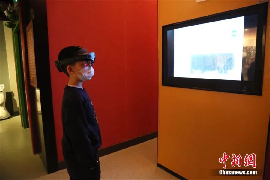 新疆哈密市小朋友利用MR眼鏡對(duì)彌勒會(huì)見(jiàn)記進(jìn)行參觀體驗(yàn)。新疆哈密市博物館 供圖