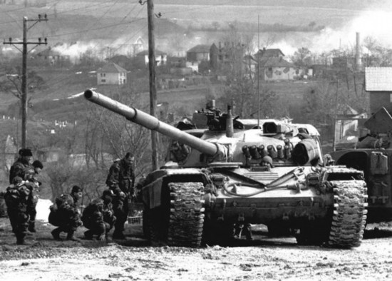 這是1999年3月24日,南聯(lián)盟軍隊(duì)的一輛坦克在科索沃省德雷尼察地區(qū)待命,隨時(shí)準(zhǔn)備戰(zhàn)斗。新華社發(fā)