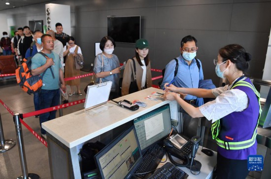 5月13日,乘坐西安-烏魯木齊-阿什哈巴德首趟航班的旅客準備登機。