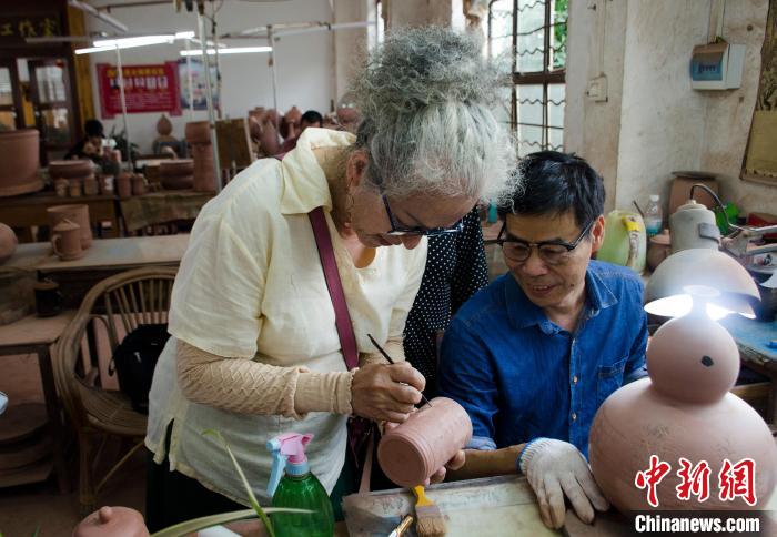 中新社欽州5月17日電 (翟李強)“你泥中有我,我泥中有你。”正在廣西參訪的臺灣花蓮縣秀林鄉(xiāng)陶樸閣美學才藝發(fā)展協(xié)會理事長連美惠一邊哼著歌,一邊向記者介紹花蓮陶瓷與廣西欽州坭興陶“連親”的故事,她很開心再次來到廣西“再續(xù)前緣”。
